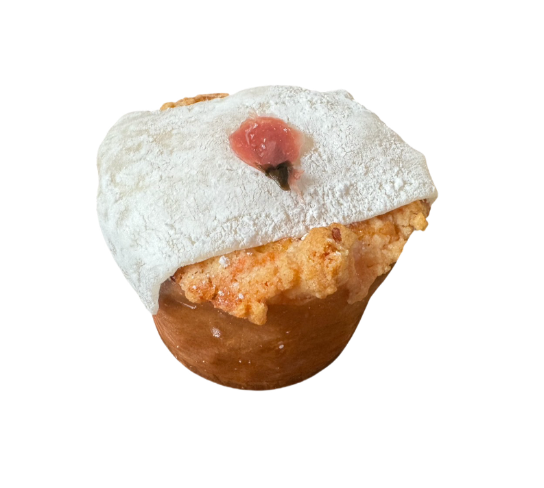 春限定☆桜風味の生地に桜あんと桜味のクランブル。求肥をトッピングした桜づくしのマフィンです。